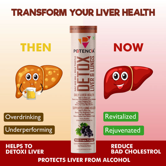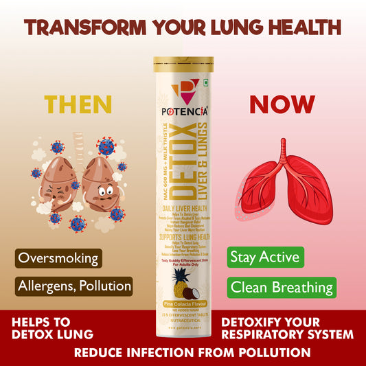 Potencia Liver & Lung Detox Effervescent Tablets | 10-in-1 Herbal Cleanse with Milk Thistle, NAC, Ginseng, Turmeric & Astaxanthin | Supports Liver Health, Lung Detox & Immunity | 15 Tabs/Bottle