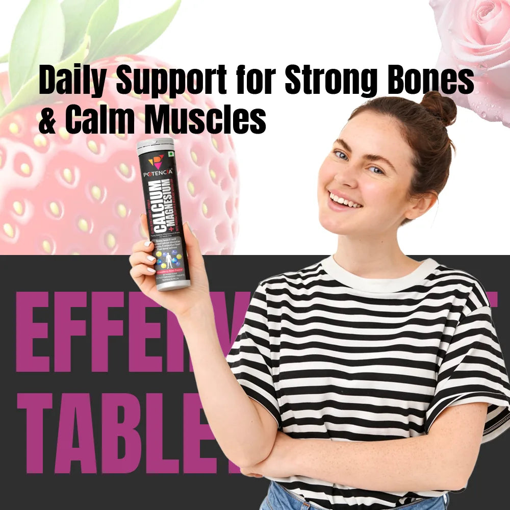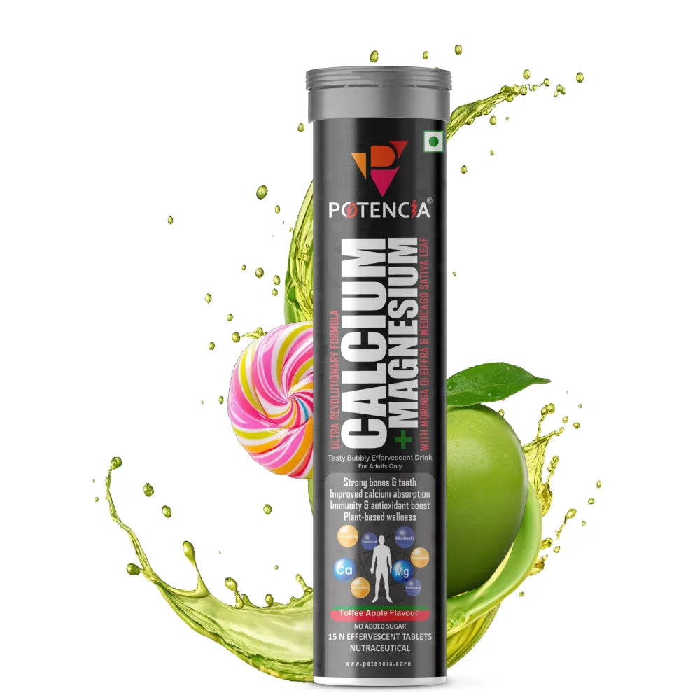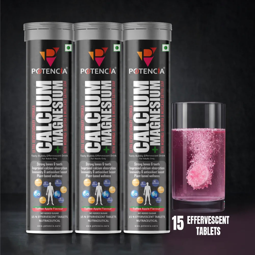 Potencia Calcium + Magnesium Effervescent Tablets | Dual Magnesium & Dual Calcium | With Moringa, Medicago & Sativa | 15 Tabs/Bottle